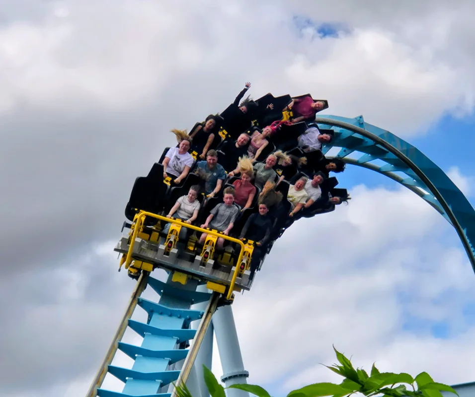 The Wave is a sit down coaster originally manufacturered by Intamin. This roller coaster was previously known as 'Shockwave' when it opened in 1994 all the way up until 2023. As Shockwave, the ride featured standup trains made by Intamin which was later changed along with a bigger refurbishment of the ride. For the 2024 season, Shockwave was converted into The Wave, with the biggest change being the change from standup to sit down trains. The new sit down trains were built by ART Engineering. The ride features a loose surfing theme with lots of surfing imagery and aesthetics around the area. The ride also possesses a radio-like soundtrack with rock and roll music playing in the station, queue and surrounding paths. The ride experience starts with a drop into a large vertical loop. Then the ride enters a zero-g roll, the only zero-g roll to feature on a ride of its model. Then it maneuvers into two consecutive corkscrews before it enters the breaks. The ride is quite tall compared to the other rides in the park and contains lots of whippy and high g force moments.