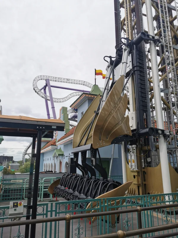Tour de chute où la nacelle s'incline face au sol, légendaire !