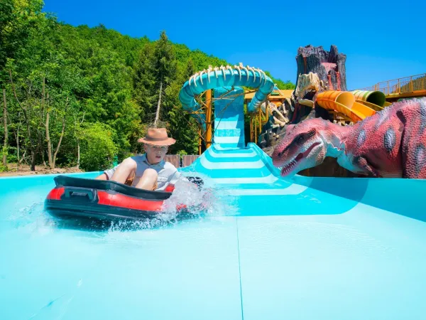 Hop into a rubber boat and slide down several spectacular slides through an impressive volcanic rock landscape. Watch out – lifelike dinosaurs are lurking!